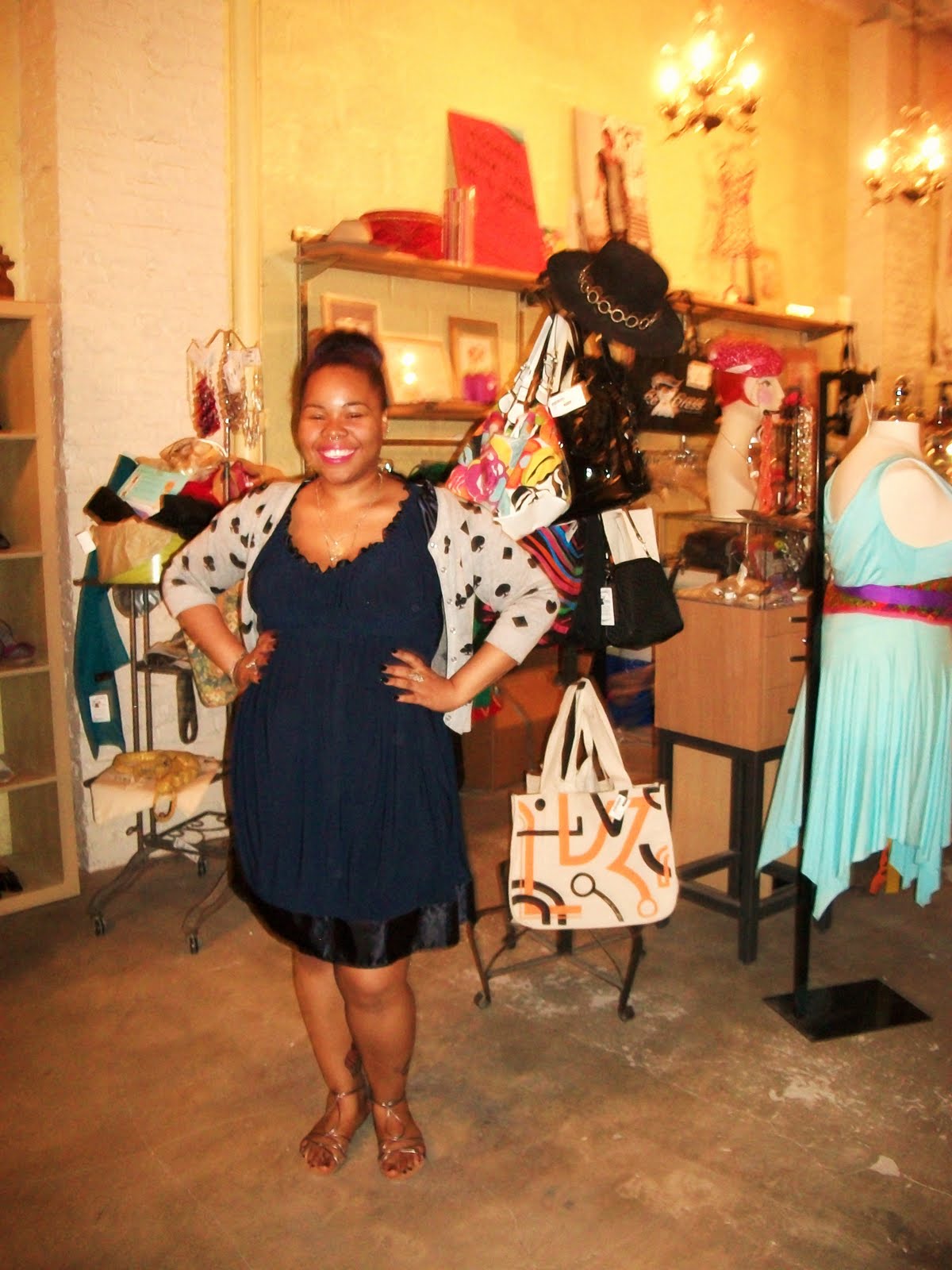 Remember how I told you I was having wardrobe malfunctions all weekend long? This was the second day it happened. I decided to dress comfortably since we were just going shopping in Brooklyn, and the Full Figured Fashion Week gods decided this was unacceptable, and so the zipper on my dress broke! I ended up having to wear some of the clothes I bought out of the store. As my roomies were saying, I looked better going out than I did coming in! Here's what I ended up in: